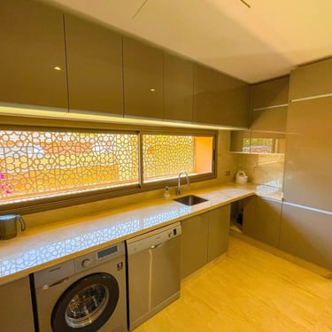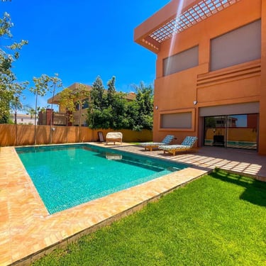Nichée dans un environnement calme et recherché, cette villa exposée plein Sud offre un cadre de vie lumineux et raffiné, idéal pour un séjour d’exception à Marrakech.