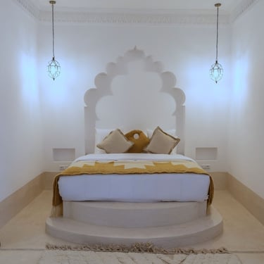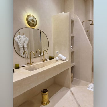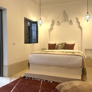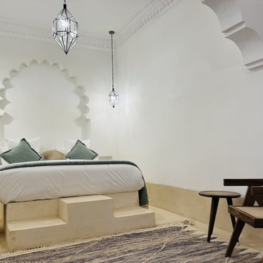 Pensé comme un refuge urbain, le riad s’organise autour d’un patio lumineux, véritable havre de paix où la lumière du ciel sublime les lignes épurées, les matériaux nobles et les touches artisanales. Chaque détail a été soigneusement choisi pour créer une harmonie subtile entre tradition et modernité.